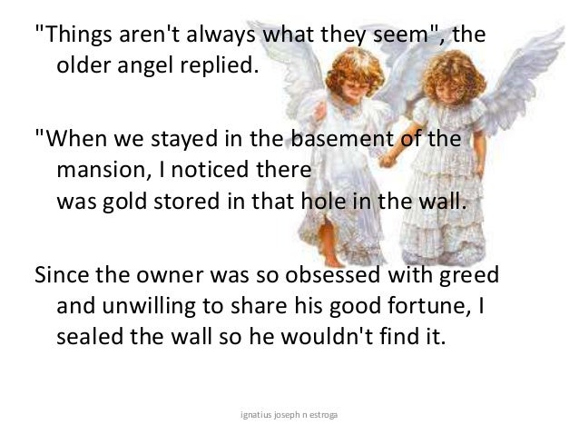 The wealthy man did not think much of the two angels of light. Two traveling angels stopped to spend the night in the home of a wealthy family. When the younger angel.